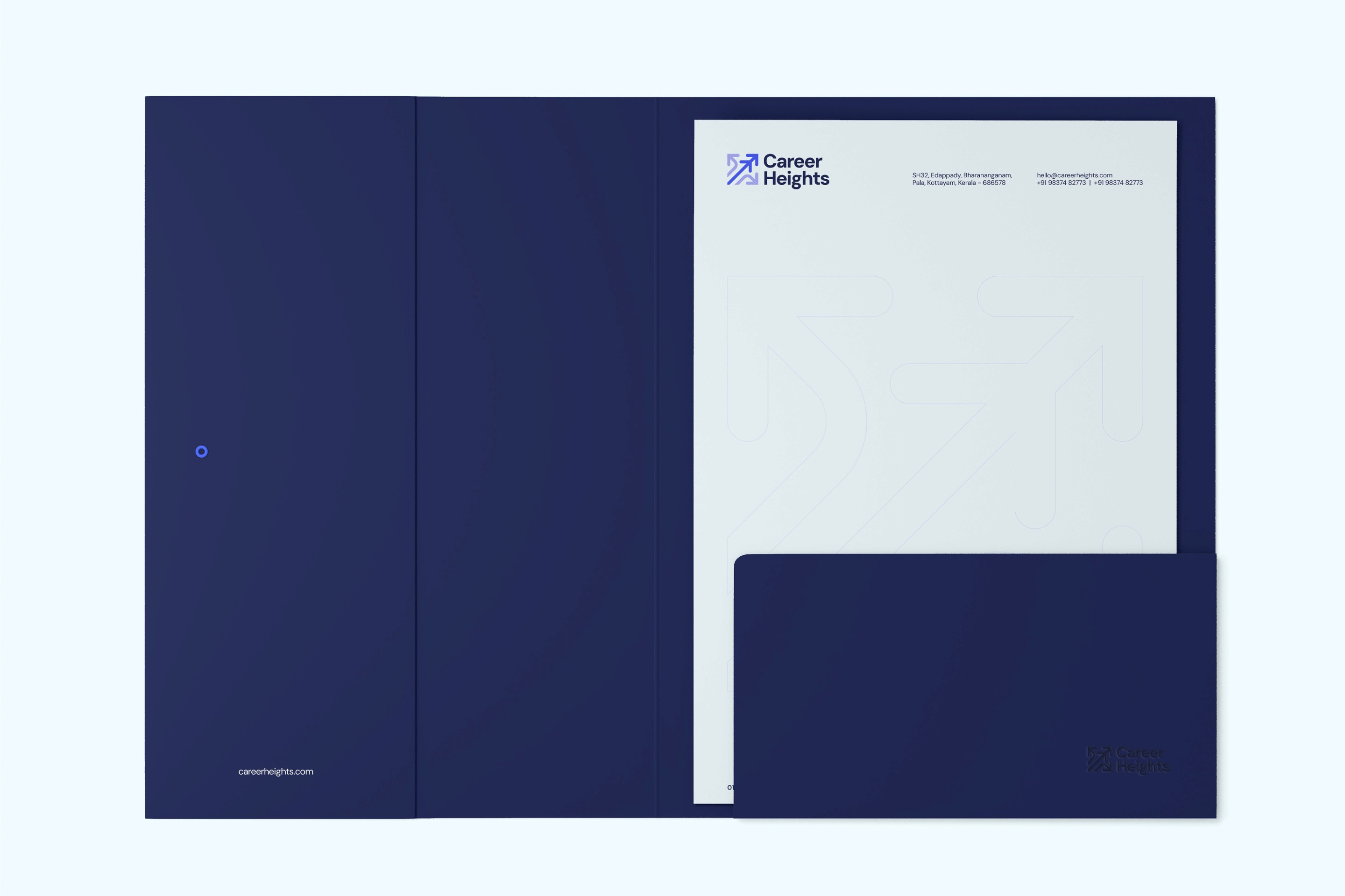 Career Heights Institute is a government exam coaching centre in Pala, Kerala, with over 1,500 selections since 2015. But when they came to us, the brand looked nothing like an institution. They had a complex, outdated, colour-heavy logo that was not digital-ready and could not adapt across platforms. There was no clear messaging, no positioning, and no visual system. They called themselves an "integrated coaching centre" without explaining what that meant or for whom.