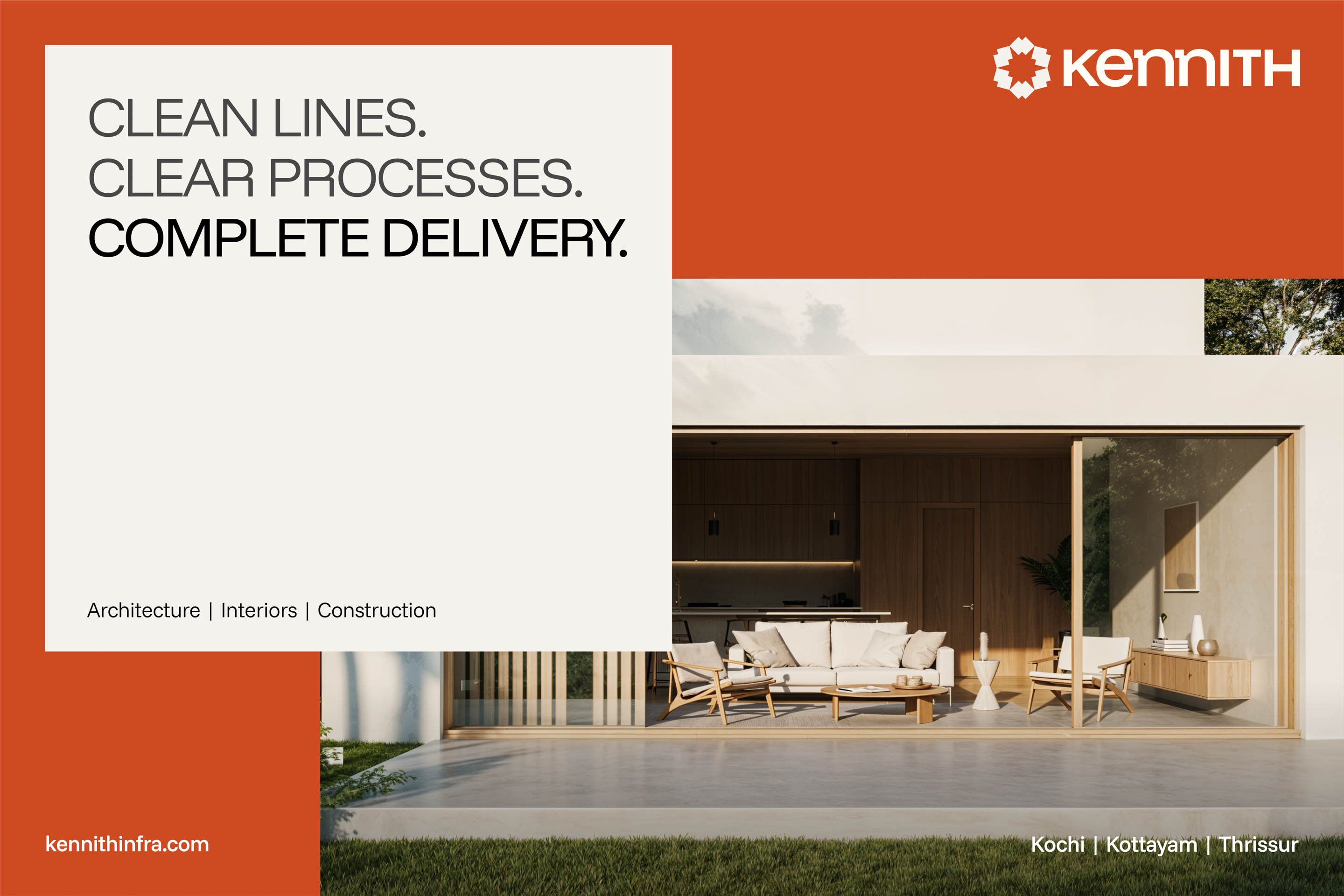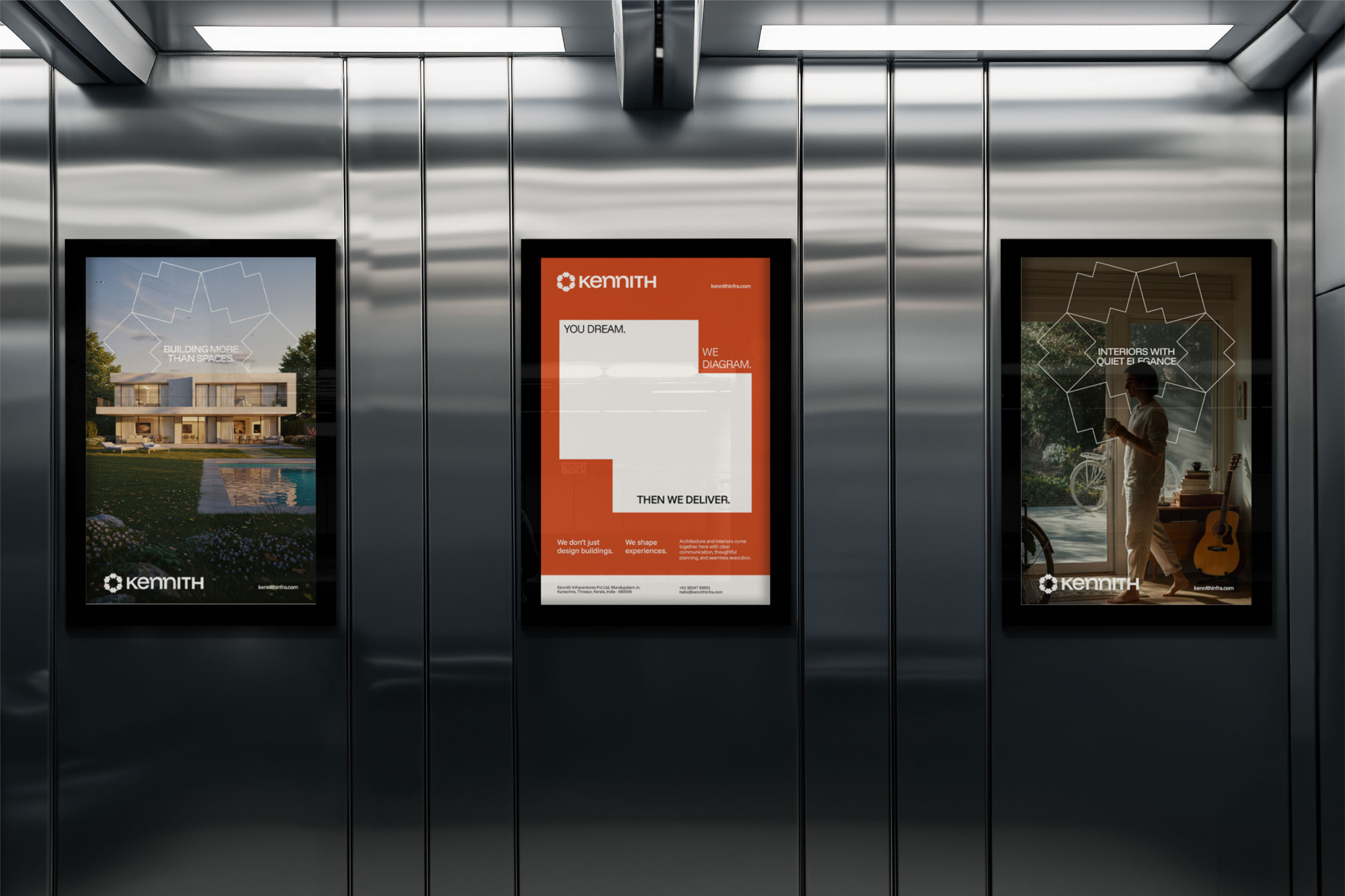 Kennith Infraventures is a design-forward architectural collective built on a foundation of expertise, collaboration, and clarity. The brand identity reflects their core values—precision, trust, and warmth—crafted to resonate with both contemporary sensibilities and grounded professionalism.